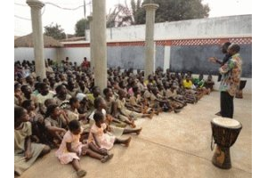 Le matin, les conteurs interviennent dans les écoles autour des contes sur les droits des enfants.